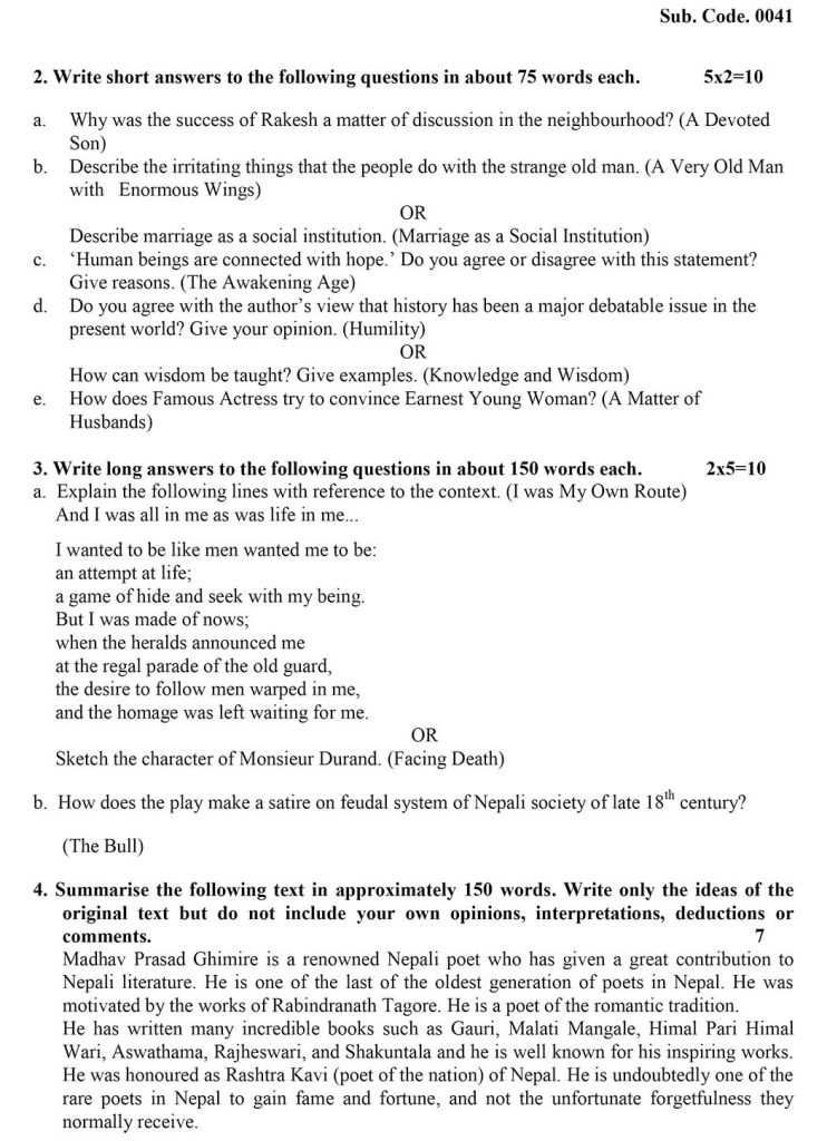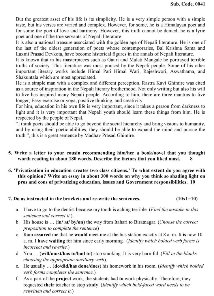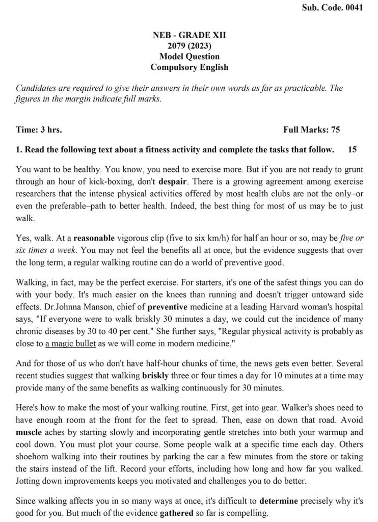 NEB Class 12 English Model Questions 2079 To 2082