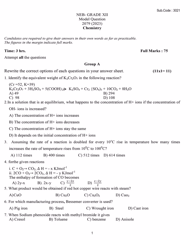 Looking for the NEB Class 12 Chemistry Model Question 2082? You are at the right place. Here, we have included the Class 12 Chemistry Model Question along with its video solution. Also, we have the old question of Class 12 Chemistry from the 2082 Board Exam.