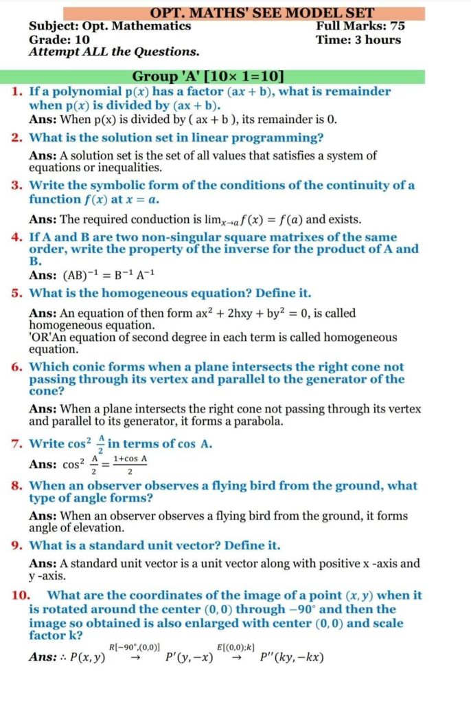 National Examination Board (NEB) organizes the Class 10 Board Examination annually. NEB Class 10 Optional Mathematics Model Questions 2082/83 are crucial for the examination appearing students, as they assist in proper practice and result in more marks. The model questions provide a clear picture regarding the marks distribution and the likely question types in the board exam.